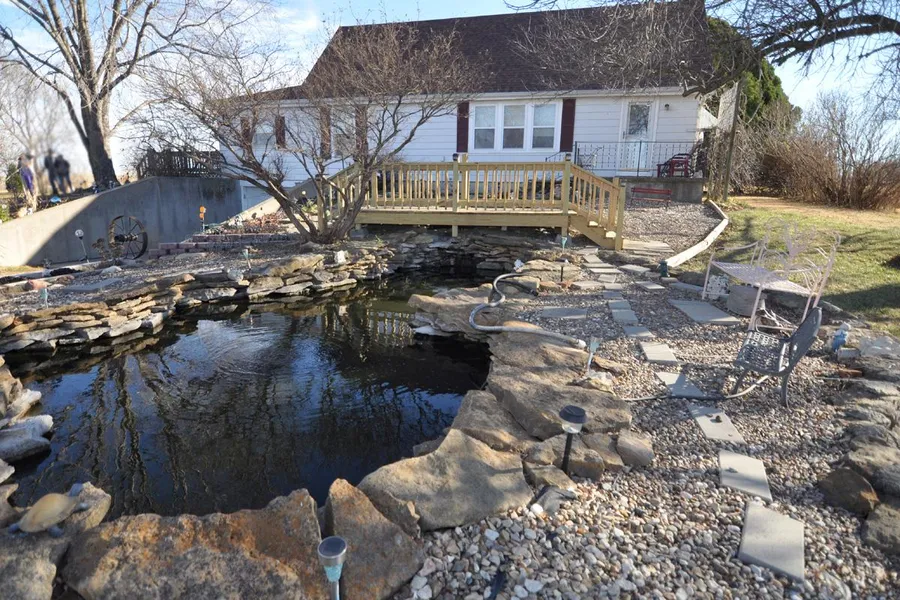 Beautiful setting! Raised ranch home on 1.77 acres. Hardwood floors, formal dining, Master bedroom on main floor or upstairs. 2.5 baths all on the blacktop. Fish pond in front yard with a wooded bridge, very picturesque and relaxing. Large Deck for watching the sunsets.
