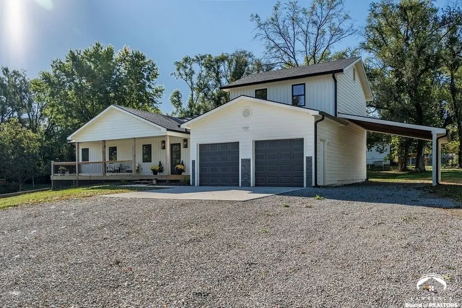 If you've been searching for space, quality, and move-in-ready comfort, this is the one. Set on well over an acre, 621 Monroe offers modern design, thoughtful details, and room to grow. The open main level features a stunning custom kitchen with quartz countertops and a large peninsula, flowing effortlessly into the living and dining areas filled with natural light. Unwind in the primary suite with its spa-like bathroom, tiled walk-in shower, double vanity, and Bluetooth speakers. The full basement already includes a large family room and provides space to easily add a 5th bedroom or additional living area. Step outside to enjoy peaceful mornings on the covered front porch and a spacious yard ready for a shop, garden, or outdoor entertaining. Just a short drive to Lawrence or Topeka, this home delivers the best of modern living with the breathing room buyers crave.