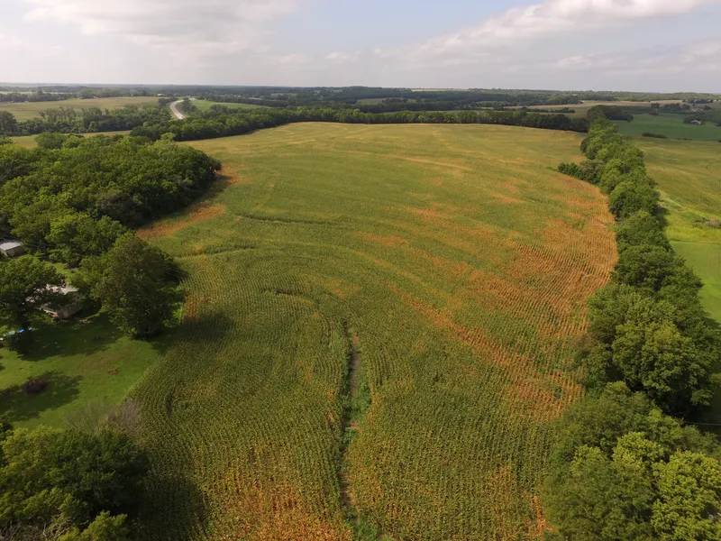 This land is currently planted in corn and features class 3 soils mainly Gymer Silt Loam. The outside perimeter is lined with beautiful hardwood trees to hold those massive bucks and allow for privacy from the road should you choose to build your dream home on this incredible farm. The slope is gentle and varies from 900 to 950 feet.