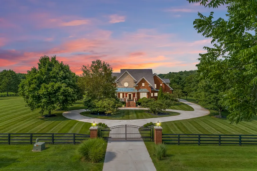 Situated among mature trees and sprawling acreage within one of Louisvilles most exclusive neighborhoods, this stunning shingle-style estate home offers nearly 9,000 square feet of luxurious custom-built living space, design of its riverside surroundings. Nestled on a private treelined drive within the award-winning North Oldham County school district, the nearly 4 acre estate is thoughtfully positioned at the rear of a spacious corner lot and features m access, impressive circular driveway, rolling lawn, and tiered deck with pergola, all conveniently located just minutes from Prospects best shopping, restaurants, and expressways. Designed with a coastal curb appeal, guests wi wraparound porch with slate tile accents and copper roofing before entering into the homes sophisticated foyer with marbled tiling and columned archway. A light-filled columned hallway guides guests into the extraordinary two featuring gas fireplace, built-in bookshelves, tiered picture windows, and French door access to the homes front porch. From the great room, the first floor folds into the gourmet eat-in kitchen, featuring a desirable open floor plan and incredible windowed hearth room. Designed for effortless entertaining, the eat-in kitchen features granite countertops, stainless steel appliances, ample cabinetry, spacious prep island with vegetable sink, and breakfast room entertaining deck. The gracious windowed hearth room was carefully designed to enjoy scenic vistas in every direction, offering stunning vantage points of the property regardless of the time of day. The first floor continues with a ceiling, elegant built-ins, and triple window, offering shared access to the kitchens convenient butlers pantry with wet bar. The opposite wing of the first floor features a seclusive oasis for homeowners, beginning with a gracious windows, tray ceiling and built-in bookshelves. The suite continues with a lavish en-suite bath with dual vanities, oversize walk-in closet, luxurious-in shower, soaking tub, and shared access to the homes first floor laundry room. handsome study with wainscoting and French door entry, spacious powder room, mud/laundry room, and attached 3-car garage. Accessible by two stairwells, the second floor features a second incredible owners suite with separate bathroom, and raised windowed sitting room with private covered porch, offering a birds-eye view of the property. The second floor continues with a sizable bedroom suite with attached bonus room, laundry, and en-suite bathrooms with shared Jack-and-Jill bath, and an oversize loft area, perfect for a second floor playroom or office. The lower level has been designed for enjoying time with friends and family, featuring spacious family room with an exercise room, craft room, bonus room (previously used as an additional bedroom), full bath, half bath, and unfinished area for additional storage. A rare offering for the neighborhood, this home is not to be missed.