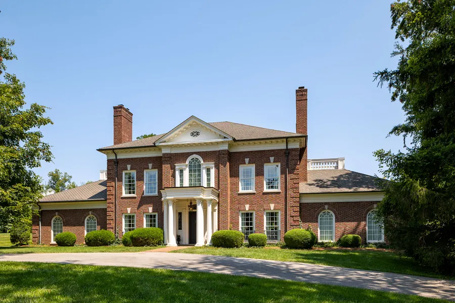 Not a detail was missed in this Georgian colonial home perfectly positioned on a sprawling 3.75 acres on one of Louisville's most desirable and exclusive streets, Mockingbird Valley Drive. Originally built in 2008 by the Steier Company, this gorgeous home features over 9,000 finished square feet and includes all of features, spaces, and attention to detail that one would expect for this high end luxury offering. An elegant and formal entryway coupled with detailed moldings greet you upon entering with a formal dining room to your left and formal sitting room to your right, both with wood burning fireplaces. Make your way through the cross hall and you will find yourself in the heart of the home containing a spacious living room featuring built ins and a fireplace, connected to the open kitchen with robust granite island and high end appliances. The kitchen also features a large, walk in pantry, and is conventionally located by the back stairwell, mud area and laundry room, as well as the entrance to the 3 car garage. The back of the home features large windows and three pairs of French doors that overlook the meticulously maintained grounds as well as the dual brick patios, the upper level containing an outdoor brick fireplace. The first floor also features 10.5 foot ceilings as well as the private, primary suite with its own desk area, fireplace, gorgeous bay window, and spacious bathroom with tub and large shower. The oversized closet features custom built ins as well as dressing space. Make your way up the main stairwell to the second floor and you will be welcomed by an open, yet cozy, living room. All four secondary bedrooms are oversized and feature large, walk in closets, and two sets of rooms share their own jack and jill bathroom. The second floor also conveniently features its own laundry room. The basement of the home features 10.5 foot ceilings and a first class bar and entertaining kitchen overlooking the spacious family room with perfectly positioned double sided fireplace. Two other large flex rooms are located in the basement, one currently being used as a gym and the other being utilized as a guest bedroom flanked by a full bathroom. The basement also contains tons of unfinished storage space and a second stairwell to the main floor. There is no shortage of natural light in the walkout basement as there is a wall of windows and french doors that open up to a lower level brick patio. 32 Mockingbird Valley Drive is one of the most coveted properties surrounding Louisville Country Club and is ready for a new owner to call it home.