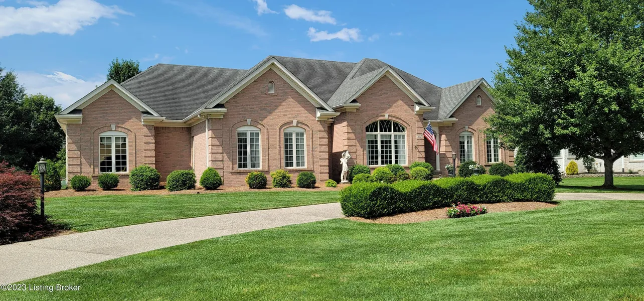 Come and enjoy life in the Prestigious Persimmon Ridge Golf Course Community. This beautiful sprawling ranch offers easy living all on one level! Buyers will appreciate this custom built home with high quality finishes and features. Guests are first welcomed into a bright stunning foyer that opens to the elegant, banquet-sized dining room with a double trey ceiling finished with exquisite trimwork and a wall of windows to fill the room with natural light. The spacious adjoining living room features a double trey ceiling, gas fireplace with mantle and custom built-in entertainment center. From the living room, enter the kitchen with a spacious prep area and granite countertops, breakfast bar and separate dining area along with a comfortable seating area where family and friends can gather before dining. The kitchen has plenty of storage in the custom cherry cabinetry and walk-in pantry closet. A free standing china cabinet that matches the kitchen cabinets allows for more storage and display space. The first floor continues with an impressive primary suite with an eye catching round trey ceiling, bright windows and luxurious primary bathroom with dual vanities, soaking tub, glass enclosed shower, and spacious walk-in closet. Two gracious bedrooms with large closets and shared Jack-and-Jill bath. The first floor is complete with a powder room and laundry room with sink, storage, and access to the spacious 3 car garage with space for a tractor. The 1025 square feet of finished space in the lower level is designed for spending time with family and friends, offering spacious exercise room or craft area, family room with a custom built-in entertainment center and a wet bar with space for an under counter refrigerator. The basement is complete with a full bath. Additional features of this fine home: Screened- in Back Porch, Small Patio, Lots of Hardwood Flooring, Pella Designer Clad Windows most with in-between- glass blinds, 13 closets, Whole House Vacuum System, Security System, Lawn Irrigation System, Water Softner System, Circle Driveway, 6 inch exterior wall studs for added R value. Large ? acre lot. A rare offering, this is your chance to own this custom built home.