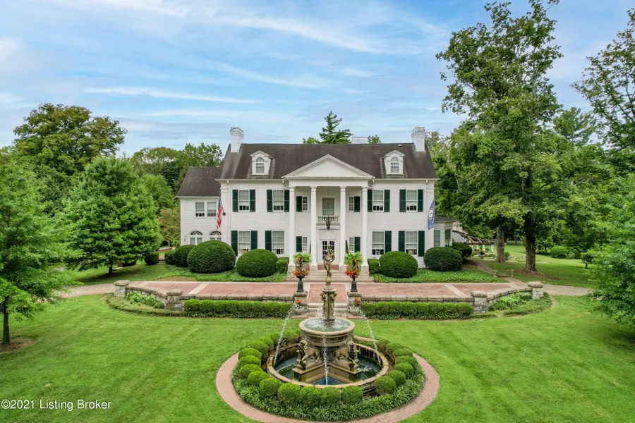 The massive Doric columns, thirty-foot imported Belgium fountain and circular limestone and brick driveway create a fitting entrance to this Colonial Revival mansion. It was originally built as a Summer home in Anchorage by John Bayless in 1869 and then transformed and expanded to its' current grandeur in 1929 by the second owner, Charles Ross, with the assistance of architect, Frederick Morgan. The current owner purchased ''Bellewood'' 15 years ago and brought it into the 21st century, carefully restoring all the outstanding elements of this historic home while making the needed updates and changes desired by today's families. You'll find 14' ceilings, random width hardwood floors, extensive crown molding, 5 fireplaces and fine architectural detail throughout. The welcoming grand foyer opens to several gracious rooms, but the Gumwood paneled library with floor to ceiling bookcases and the expansive dining room with its' hand blocked Zuber wall mural steal the show. The kitchen and butler's pantry renovation has just recently been completed. Truly a chef's dream kitchen, you'll find a Viking oven with warming drawers, a 6-burner range and an 8-burner range, 2 Subzero refrigerators, Grill, Viking and Bosch dishwashers, and built-in Miele Espresso Maker and Pressure Cooker. The wet bar is fully equipped with Viking appliances as well, making entertaining here a delight, whether it's a catered party or you are chef du jour. The mechanicals have all been updated; plumbing, electric and most recently the steam heat replaced with a new HVAC system serving all three floors. A sound system and alarm system were also added. The primary bedroom on the second floor offers beautiful views of the lush landscape, ensuite bath and dressing area. Three additional guest bedrooms and two baths finish out the second floor. Four guest rooms and a bath on the third floor offer you plenty of room for Derby guests. This nearly 10 acre estate offers a quiet, private retreat and wonderful outdoor opportunities to get away from it all. There are brick and stone terraces that lead to the completely rebuilt guest cottage and outdoor covered kitchen. The guest cottage boasts a beautiful limestone fireplace, copper roof, kitchen with high-end appliances, bar, marble finished bathroom, outdoor shower and second floor bedroom. The outdoor kitchen and living areas are the ultimate entertaining spaces with a stone fireplace oven, master grill and large outdoor bar, you'll find you spend much of your free time either here or at the relaxing pool just a few steps away. A four-car garage and three stall stable round out this one of a kind estate. An extraordinary home and rare offering.