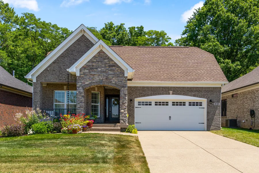 The primary suite is conveniently located on the first floor with an upgraded en-suite bath and walk-in closet. The first floor also features a second bedroom with a full bathroom. The laundry room and drop zone are located off of the attached 2-car garage. The finished basement has a family room, a bedroom and a full bathroom, as well as plenty of storage space. The home is in "mint condition" and move-in ready! Beautiful plantation shutters provide privacy and style. The exterior grounds are taken care of by the HOA providing a truly maintenance free property. The Villas of Floyds Fork are conveniently located close to shops, restaurants and easy access to the highways. Make this House your new Home! Please see the full list of upgrades under documents.