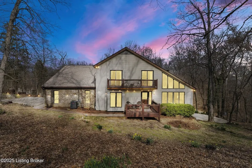 Nestled on 7 private acres just off Blankenbaker Parkway and Taylorsville Rd, this tranquil property offers a peaceful retreat surrounded by lush woods and friendly neighbors. Relax on the back deck, enjoy the serene views of the trees, and listen to the birds, all while embracing the privacy and solitude of your surroundings.Perfect for entertaining, this home features an updated kitchen with double ovens and dishwashers, an expansive open great room, and a large outdoor deck. With 5 spacious bedrooms, 3.5 bathrooms, and over 4000 square feet of living space, there's plenty of room for everyone. Inside, the home is an open floorplan that boasts a grand stone fireplace in the living room, a cozy library, and an office area. Large first floor primary bedroom and bathroom with huge walk in shower. Downstairs, enjoy a dedicated TV room with a projector and built-in sound system, plus a cra...