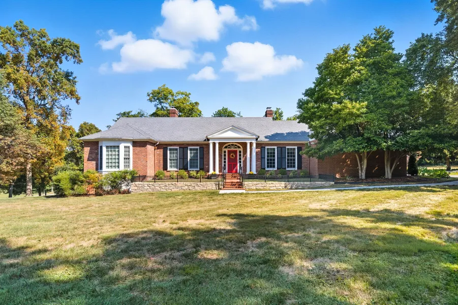 Nestled on a picturesque 1.75+ acre lot in a private, countryside setting, yet located just moments from Brownsboro Rd and HWY 22, this timeless ranch offers a move-in ready retreat for buyers looking to ''right size'' without compromising on location or style. With a desirable ranch layout, newly remodeled kitchen, sunroom addition with fully equipped wet bar, finished walkout lower level, and unfinished second floor, this brick home has been thoughtfully designed and beautifully remodeled to accommodate a wide range of buyer needs- perfect for those looking for room to grow or age-in-place. The home's treed, rolling backyard with traditional paver patios offers a privacy and spaciousness rarely available in the area, ready for year-round use and enjoyment. After appreciating the neighborhood's one-of-a-kind entrance with secure gate entries and winding drive, guests are first welcomed to the front courtyard of the home with stone walkway and columned front porch entry. Past the covered porch, the home's bright foyer with barrel vault ceiling and sleek hardwood floors sets the tone for the first floor, opening into the formal dining room with floor-to-ceiling windows and wainscoting. A stunning kitchen remodel offers granite countertops, stainless steel appliances, floor-to-ceiling cabinetry, and eat-in island. The first floor continues with a new sunroom addition designed to showcase the property's stunning views and foliage, while still comfortably entertaining guests with custom-built wet bar and access to the home's side patio. A spacious living room and welcoming study provide two additional gathering spaces for the first floor, each featuring fireplaces and banks of windows overlooking the rolling backyard. The first floor primary bedroom offers a private retreat, featuring bay window, newly expanded closet, and en-suite bathroom with soaking tub, glass shower, and oversized vanity. A handsome guest bedroom, full bath, office, and attached two-car garage complete this level. Finished by the current owners, the home's walkout lower level features a large family room, additional guest bedroom with bright built-ins, playroom or hobby room, full bath, laundry room with wrapping paper station and additional storage, and workshop area. The home's second floor offers ample room for unfinished storage or an inexpensive, future built-out option for new owners. Offering immediate access to the restaurants, businesses, and expressways of the Brownsboro Rd and Westport Rd corridors, this stunning retreat is not to be missed!