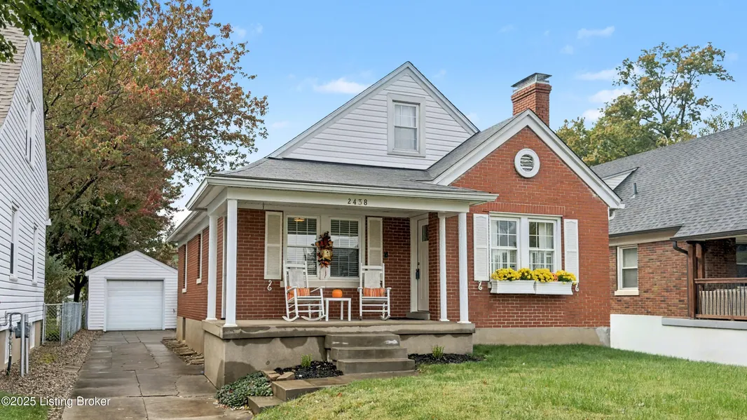 Adorable home in popular Parkway Terrace. Solid brick home with covered Front porch, dedicated driveway and garage. Enter the home through the Living room with fireplace and open concept to Dining room. Efficient Kitchen with all appliances remaining. You will spend all your free time on the enclosed sunporch overlooking the private totally fenced rear yard. Two bedrooms with full bath and separate laundry room complete the first floor. Upstairs is a very large bedroom, big enough for king size bed and sitting area. The lower-level walks up and out to the rear yard with plenty of room to finish plus a storage room with mechanicals. Most windows have been replaced. Convenient to U of L, Fairgrounds and Expressway!