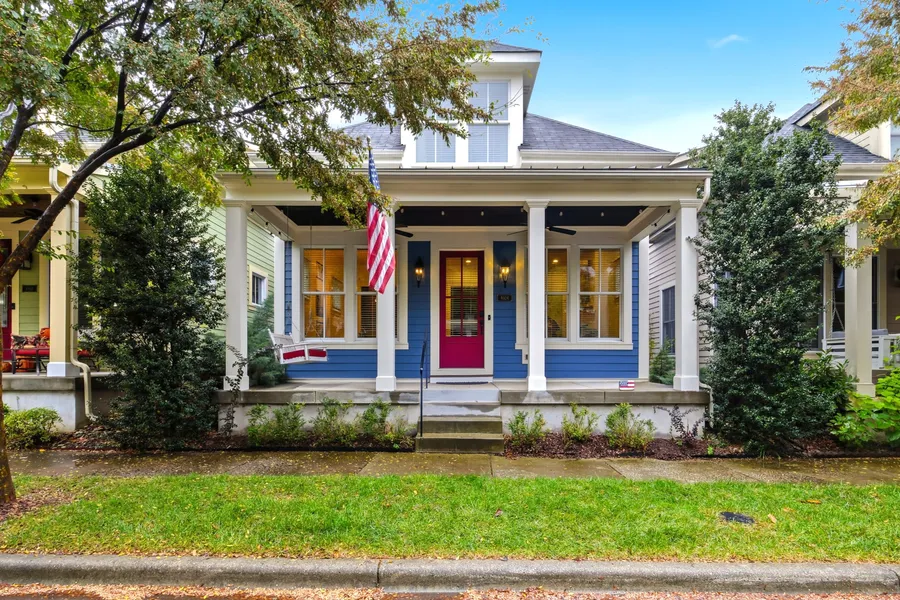 Nestled on a tree-lined street in the heart of the south village in Norton Commons, this beautiful home features an inviting front porch and a wonderful floor plan for entertaining! The fabulous curb appeal presents a welcoming entry. Once inside, you'll find the spacious great room featuring an open floor plan with a large living room and dining room combination that open to the kitchen. The living room includes a gas fireplace and hardwood floors that extend through the dining room, perfect for any dinner party! The chef's kitchen boasts stainless steel appliances, granite countertops, and tons of cabinet space. Experience one-level living as the primary suite is located on the first floor, with a large bedroom, beautiful en suite bathroom, and spacious walk-in closet with washer and dryer. A half bathroom and access to the rear garage and carport complete this level. Upstairs, you'll find two bedrooms, a full bathroom, another laundry, and a landing area that would work great as a home office. The fully finished basement provides a new owner with tons of additional living space! There is a large family room with a custom wet bar that includes a beverage fridge, bar sink, kegerator, and wooden-topped bar seating area. You'll also find a private bedroom suite and full bathroom, which is perfect for guests. The home also includes energy efficient solar panels. Just steps from the popular shops and restaurants that Norton Commons has to offer, this place is the perfect house to call home!