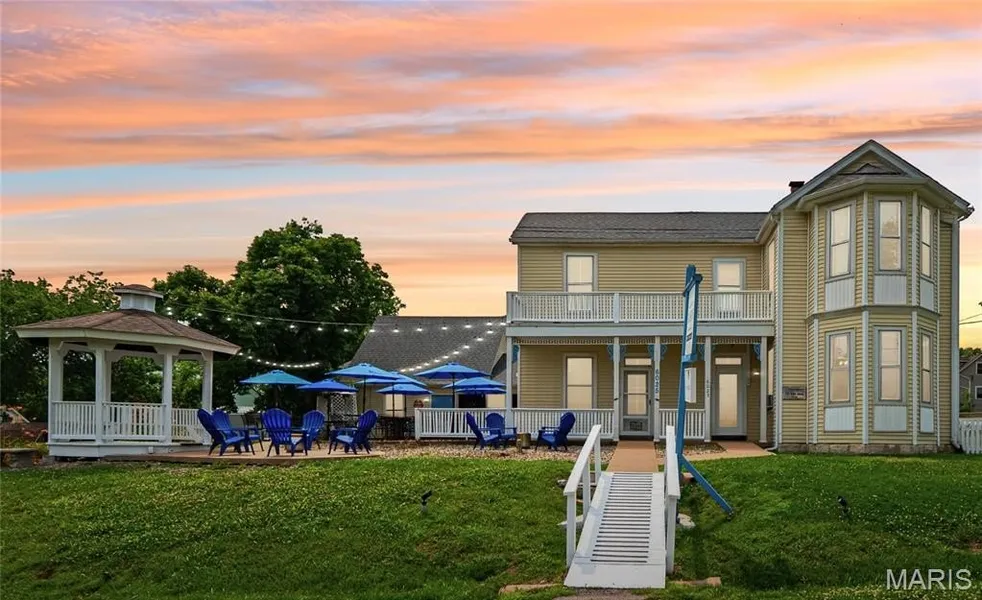 Nestled in the heart of charming Kimmswick, an extraordinary opportunity awaits. This historical gem, boasting captivating Victorian elegance and an unparalleled location, offers a rare blend of timeless character and modern convenience. This remarkable property has been thoughtfully updated to provide a worry-free living or business experience. Zoned retail/trade, but easily rezoned for residential, it offers endless possibilities. Beyond the welcoming porch, the interior unfolds with a captivating blend of historical details and contemporary upgrades. Ten-foot ceilings create an expansive and airy feel throughout the main level, while original fireplace mantles and intricate moldings whisper tales of yesteryear, adding a touch of irreplaceable character. The remodeled kitchen boasts vaulted ceilings, quartz counters, triple sink, prep sink, planning desk & ample pantry. Main floor laundry & full bath add convenience. The bright living room (currently a gift shop) flows to outdoor entertaining space. Upstairs features 3 bedrooms & a renovated full bath. Updates include new roof/siding in 2025, newer electrical panels, PEX plumbing, some vinyl windows, French kitchen doors, newer garage HVAC, and sump pump. A detached oversized 2-car garage with a workshop & loft completes this incredible offering. Ideal for a Bed & Breakfast, retail shop, restaurant, or your stunning single-family home. Don't miss this unique opportunity in the heart of Kimmswick! Showings begin Wed 6/18.