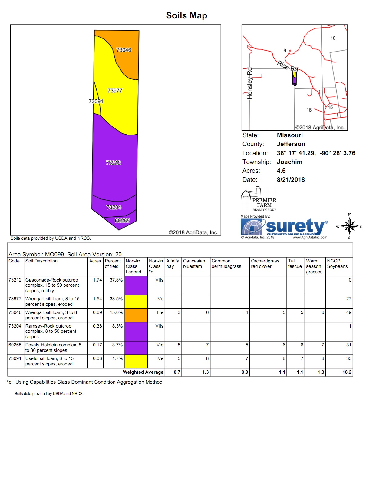 Search for detailed parcel information including; Elevation & Vegetation Maps, Ownership Information, Detailed Parcel Information, Crop History Map, Soil Survey Productivity Data, and more.