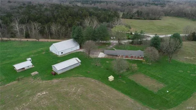 Can you hear nature calling you to this peaceful Homestead? This 1,840 SF full-brick home (3 bedrooms/2.5 baths) rests on 27+/- acres. Home has a covered front porch, covered patio just off the kitchen, and windows in the family & dining rooms which allow you to see the awesome sights and sounds of nature at dawn or dusk! Don't miss the living room with WB fireplace, spacious kitchen w/custom cabinetry, separate dining room, family room, master bedroom w/bath, gleaming hardwood flooring in nearly every room, & much more. Outside your Farm comes complete with a huge Barn--3,800 sq ft w/hay loft, corn crib, stalls & electric; Hog barn recently used as workshop w/electric. Oversize equipment shed & chicken coup too. Homegrown never tasted so good as from your own garden spot & fruit trees. There are approx 7 acres fenced for pasture & currently 15 acres leased for crops (portion of the field is in the flood plain). Home has been well cared for and is ready for your family!