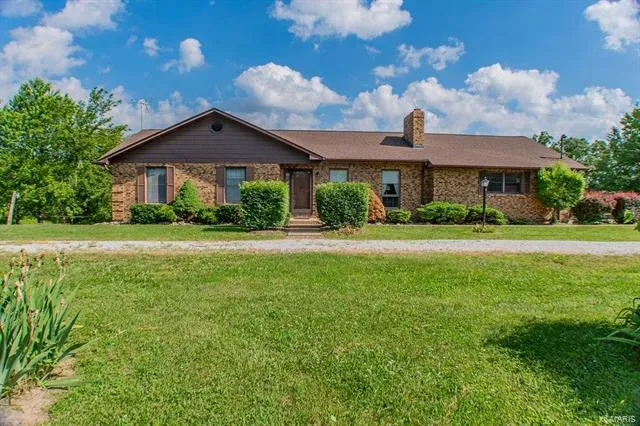 This may be the perfect opportunity for country living and a short drive to the quaint town of DeSoto. This meticulously maintained full brick ranch home on 6+ acres can be your escape from subdivision living while enjoying the wildlife, having a garden, and/or having animals. There is plenty of room for a barn. The main level has 3 bedrooms, 2 full baths, Anderson windows, built-in bookcases, wood cabinets, and wood floors throughout the kitchen and dining room. Both fireplaces have inserts to maximize the heat. There is a large deck off the kitchen. The basement has a full bathroom and a large room that has been framed and insulated. It could easily be a family room, bedroom, or living quarters. Newly installed French doors lead to the back yard. The basement has a large cellar/safe room. An extra set of stairs leads to the garage for privacy if someone lives in the basement. There is a sidewalk from the house leading to a possible he/she shed.
