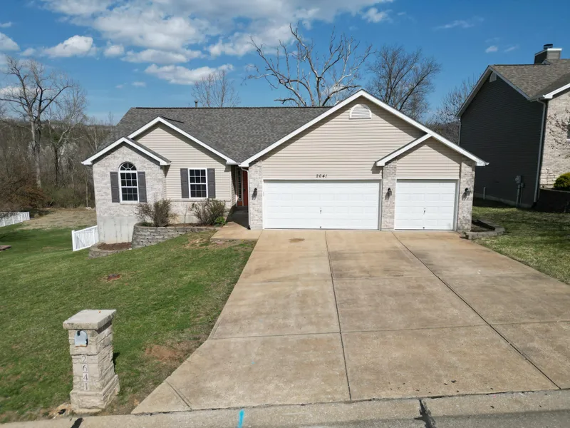 Welcome to 2641 Windmill Forest Dr. located in Imperial, Missouri. This 3-bedroom, 3-bathroom, 1,278 square foot home consists of .32+/- acres within the Windmill Forest Subdivision. The walkout finished basement is equipped with its own entertainment kitchen, full bathroom, and bonus room that could be used as an office, playroom, or guest room. The home has a three-car garage, covered and screened back porch, lower patio area for outdoor entertainment, and is fenced. This home is within the Windsor School District and has Rock Creek running along the rear boundary of the property and is considered common ground. This sale includes all the kitchen appliances in both kitchens.