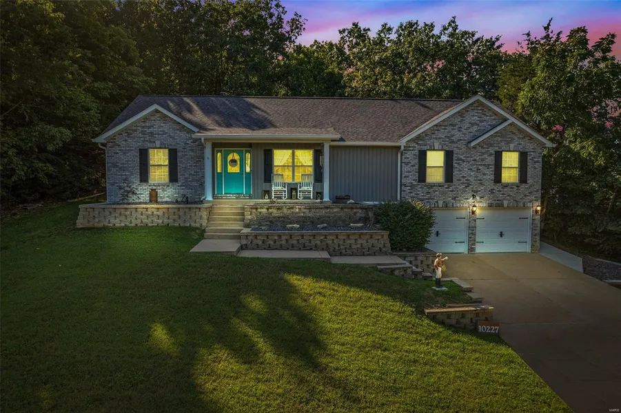 This agent owned ranch style home is located on a spacious 0.55-acre lot offering serene living. 3 bedrooms and 3 bathrooms provide ample space for family and guests. The full finished basement adds versatility and extra living area including sleeping area and full bathroom. Enjoy outdoor gatherings on the new outdoor living space, perfect for relaxing or entertaining. The kitchen features granite countertops and stainless appliances. An open floor plan creates a welcoming atmosphere. Upgrades include a new roof, siding, gutters, downspouts, French doors and retractable screen off of kitchen. Washer, dryer, pool table, 80" TV and Bose surround system in basement included. Raintree Plantation is a beautiful, gated community located in Hillsboro, Missouri. It offers access to four lakes, beach, boating, fishing, and a privately-owned 18-hole golf course with a country club. The streets are picturesque, and the custom homes create an inviting setting for friends and family gatherings.