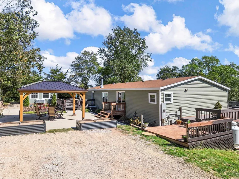 Secluded 3-bed/2-bath home nestled on 2.79 acres. This home showcases an owner's suite w/ a jacuzzi tub that fits 2, a gourmet kitchen that includes new appliances, a massive center island, an 8-burner double oven stove & ample counter & cabinet space, an open living area w/ dining room fireplace, & main floor laundry. New flooring, siding, doors, windows, gutters & roof! The property also boasts a 1bed/1bath, 640-sqft handicap-accessible guest house, complete w/ an open living/ kitchen area. Ideal for visitors or as a private office/shop. Step outside to discover a huge covered deck that overlooks a poured patio w/ a new gazebo. Beautifully landscaped yard, featuring a 3-tier retaining wall, a garden that includes pre-planted non-GMO herbs, strawberries, & much more! Above ground pool with deck & slide! 2 new large garden beds & an extensive French drain. A large pole barn & sheds offer...