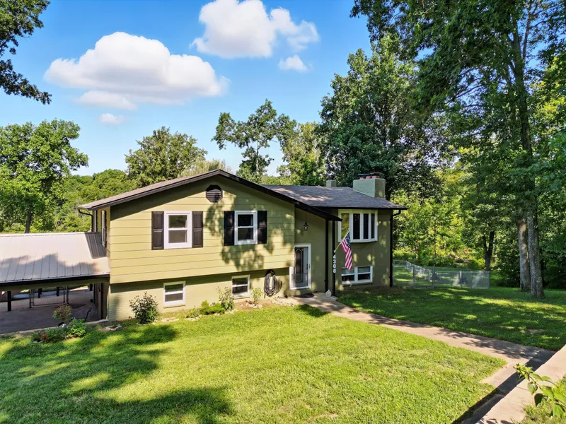 Outstanding split foyer home with 7+/- private acres! Home has a HUGE detached barn/stalls/storage building, also has a nice Boat/RV carport. There is a tuck under 1-car garage with a 2-car carport too. Large back yard with boundary line all the way to Joachim creek! Back yard has fenced area that currently is split into two separate "runs" to keep pets separated or have a place for kiddos to play and separate area for pets. Enter to main floor with large living room with wood burning fireplace- large eat in kitchen that walks out to, full length of home, composite deck overlooking all that gorgeous acreage! Down the hall are two nice size bedrooms and full hall bathroom. Primary suite with primary bathroom, nice size shower, and a walk-in closet. Lower level has a nice family room, bedroom, newly updated bathroom, tuck under garage and large mechanical room. Home has new heat pump (2023), also it has wood burning system in case of outage or as supplemental heat source. Lower-level fireplace that has electric insert. New well was put in 2023. Home is freshly painted throughout- come out and see this great home!