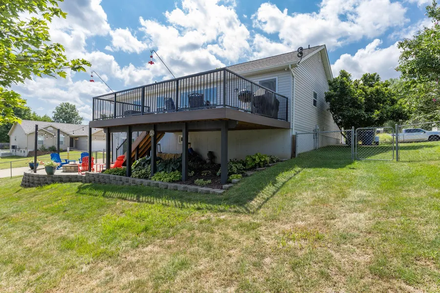 Welcome Home! This beautiful ranch home located in The Prairie's subdivision and sits on a large corner lot in the cul-de-sac. Beautifully landscaped lot with extra wide parking and added parking to side of garage. Fenced back yard, gorgeous composite deck, large patio with built in fire pit, large back yard- so much space here! Enter the home to beautiful open concept of living room, dining and kitchen with vaulted ceilings. Home has gorgeous 7mm LVP waterproof flooring, granite counter tops in kitchen, professional painted cabinets, eat in dining/breakfast room, and main floor laundry. Bedrooms 2 and 3 are nice sized bedrooms down the center hall with large full bathroom with tub/shower combo.