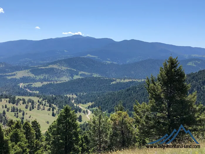 Montana land in the mountains bordering BLM land with elk and deer, and a leveled cabin site with amazing Montana views at the very end of the road near Helena, Montana.