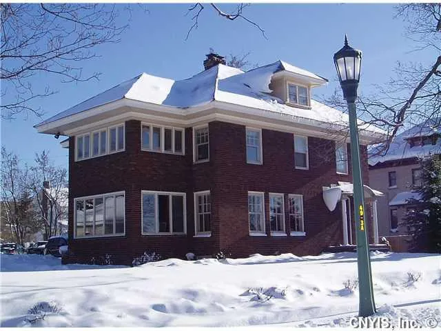 Imagine classic charm close to all that Watertown has to offer yet nestled on a double lot on a quiet street. Charming features include brick exterior, slate roof, mosaic tile entry, box beam ceilings, light bright kitchen with maple cabinets, formal dining room and two heated sun rooms. 4 Bedrooms and a full bath on the second floor and the walk up attic has a bedroom and a full bath & plenty of storage. This grand home also has plenty of closet space and a high and dry full basement. There are two garages, one single car and a newer 2 car garage. Don't miss out on this beauty. Call today!