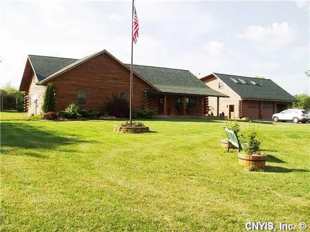 Log Home situated on 23.75 acres. As you approached the home notice the hand stacked stone wall, paved driveway, beautiful lot., 3 car garage with a spacious 1 bedroom apartment above with a back deck overlooking the spectacular lot. Saving the best for last, check out this wonder home with 4 to 5 bedrooms. The master suite with a luxurious bath is on the 1st floor along with 2 other bedrooms, 2nd bath, laundry room and an open Kitchen, dining and living room. Upstairs you will find a large bedroom, full bath & another large room - bedroom or 2nd living room? Many Options!