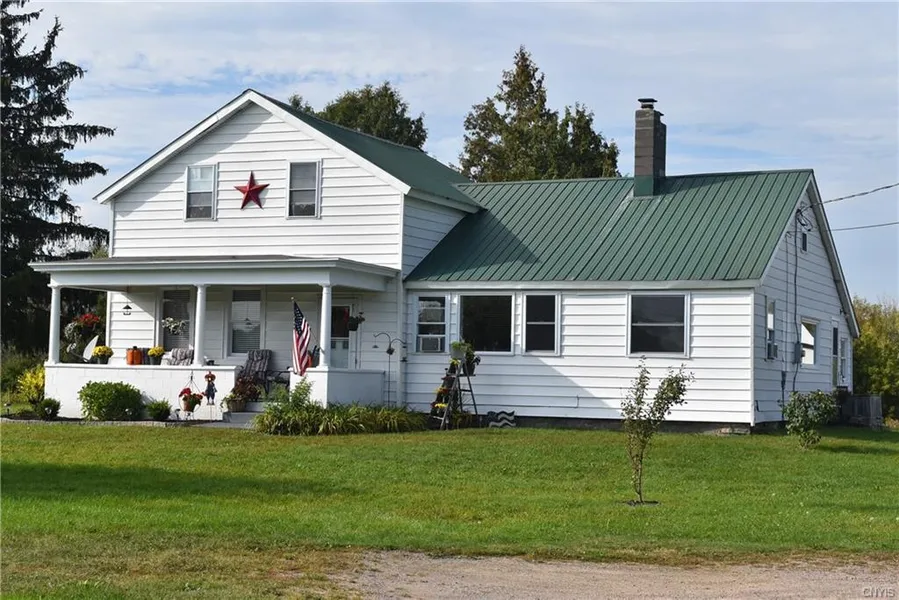 Charming Clayton Country Farmhouse renovated with style! Come check out this 3 bedroom gem located just outside Clayton with easy access to the Village and Alex Bay areas! Open floor plan with stunning new kitchen with concrete counter tops, dining/living area with original hardwood floors, pellet stove and more PLUS a cozy Den/TV area and main floor bedroom! 2 spacious bedrooms upstairs plus full attic, main floor bathroom, lovely back room/entry way with laundry and basement access, this whole place has had a total makeover! Steel roof, 1 car garage, covered front porch with original wainscotting, HUGE 2.55 acre lot which includes 2nd commercial lot, beautiful yard and more! This is one not to miss and is ready for a new owner! Fabulously priced, call today!