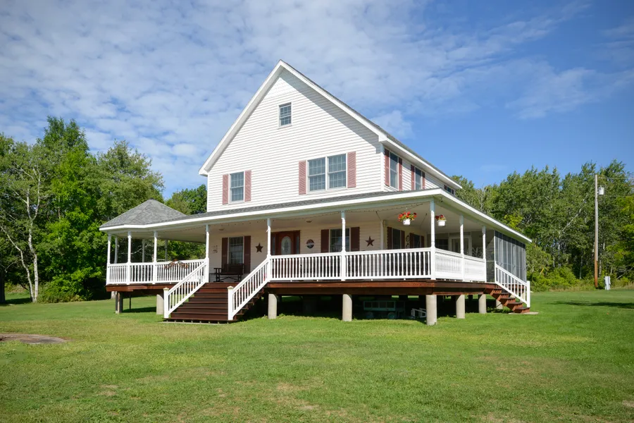 Custom built and impeccably maintained summer home on Historic Round Island. Main house built in 2000 with 3 bedrooms and 2 full bathrooms along with a guest cottage and bath. Large open eat in kitchen with living room and additional office or den. With more room to expand on the third floor for more living space. This home features a full wrap around porch for maximizing all the River views. Large screened porch for added living and enjoyment. With 175' of excellent waterfront for swimming and generous docking options. Easy walk up to house with 1.25 acres of flat land for games and fun. Large granite flat rock in front for bonfires and gatherings. Insulated and zoned with heat for extended stays. Selling fully furnished and turn-key for easy move-in this season. Round Island is 1 mile long and 1/2 mile wide with many trail options for exploring. Historic Frontenac Post office with daily mail delivery, and a tennis court for island residents. Easy commute to mainland and Clayton. This home offers many amenities for new owner's to enjoy.