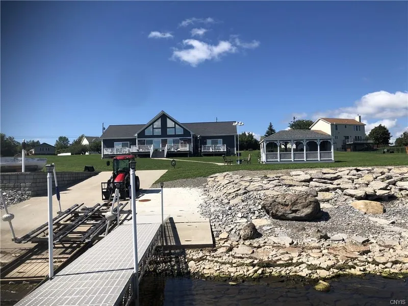 Here is your chance to own a prime waterfront home on 1.5 acres of land with 260 feet of waterfront overlooking Sackets Harbor and just minutes from Watertown and Fort Drum. Home features 3 Bedrooms and 2.5 baths with large open living room, dining and kitchen over looking the water. Features a large master suite with its own laundry and private deck. The other 2 bedrooms share a laundry and also private deck over looking the water. Large cathedral ceiling with plenty of windows, also loft for more bedrooms or living space, features a office and even a place for the dogs with their own private room. Home has plenty of amenities too 2 attached car garage plus a 14 x 32 storage shed, 12 x 20 screened in gazebo with power, aluminum dock and a powered rail system for you boat also a concrete boat ramp, paved driveway, back up generator and public water. This is a must see for a year round h...