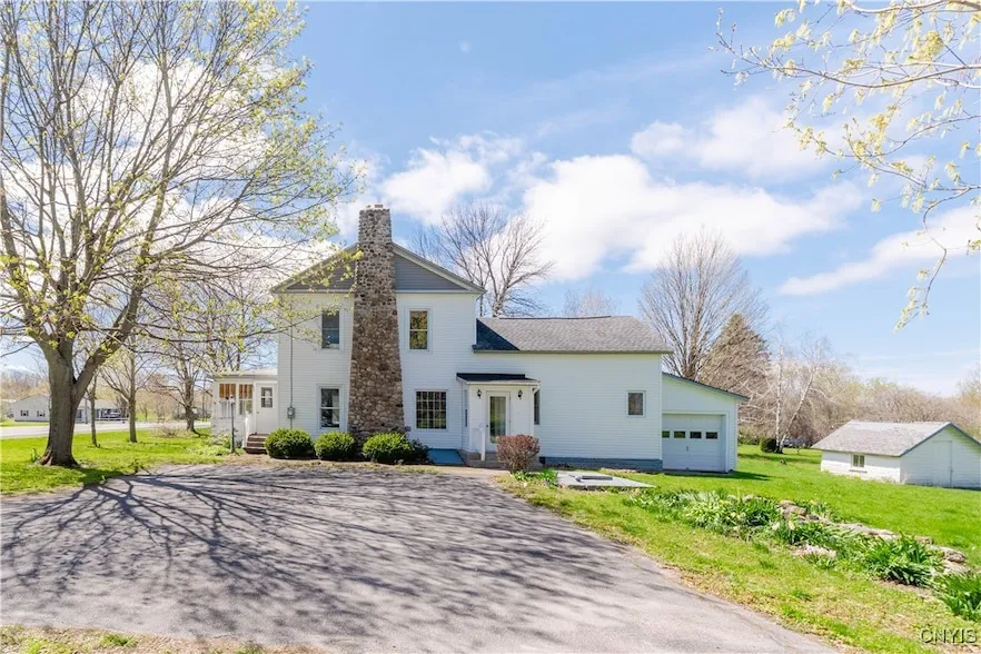 This beautiful property offers over 2,275 square feet of refined living space and sits upon an expansive 10.69 acres of meticulously maintained land, presenting a rare opportunity for those seeking space, serenity, and history. Anchoring the main living area is a striking, custom-crafted fireplace mantle, complemented by intricate stonework on the exterior, true architectural showpiece and one-of-a-kind focal point. The home features five generously sized large bedrooms, including a spacious first-floor suite with a tastefully renovated en suite bathroom. The upper level boasts an engaging and connected layout, creating a sense of charm and uniqueness among the four additional bedrooms. Outdoors, the natural beauty continues with a classic red barn, ideal for storage, hobbies, or even the care of animals. The surrounding grounds are nothing short of enchanting a verdant yard dotted with mature apple trees bearing red delicious and macintosh varieties, along with grapevines yielding Concord grapes, promising seasonal harvests and delight. Steeped in character and stories of generations past, this cherished homestead is ready to welcome its next chapter. Whether you envision a family retreat, a hobby farm, or simply a peaceful country lifestyle, the possibilities are as boundless as the land itself.