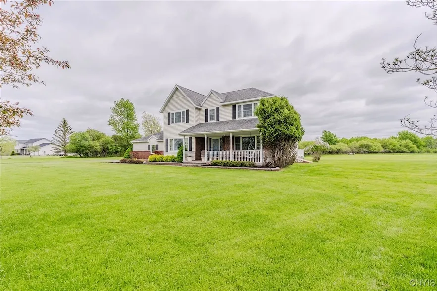 Beautiful and impeccably maintained colonial home located in the Town of Watertown no city taxes! This pristine and elegant property features gorgeous hardwood floors throughout and high ceilings that enhance the spacious feel of every room. Offering 4 bedrooms 2.5 bathrooms, including a stunning master suite with en suite bathroom, this home combines timeless style with modern comfort. The main living room showcases a stunning brick mantle above the gas fireplace, providing a warm and stylish focal point. Enjoy the versatility of a finished basement ideal for a recreation room, home gym, lounge, or even additional bedroom space if needed. Step outside to your backyard oasis, complete with a porch, elevated pool deck, and a well-maintained pool and hot tub included perfect for summer entertaining. The 1.98-acre lot is mostly open yet bordered by a mature treeline, offering natural priva...