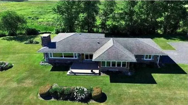 A UNIQUE AND RARE RIVER find..The stone that built this year round ranch was transported from a local island & is set on 1.47 acres with 390 feet of LEVEL Riverfrontage..With almost 1800 square feet, this 2 bedroom, 2 bath ranch home sits on a beautifully manicured lot, and includes a recently remodeled master suite, a stunning stone fireplace, a full basement, an attached 2 car garage & a large sunny bonus room. The stone breakwall with concrete launch encompasses the frontage for protection and the removable 60' dock is included .Excellent swimming, ship views and unbelievable sunsets.