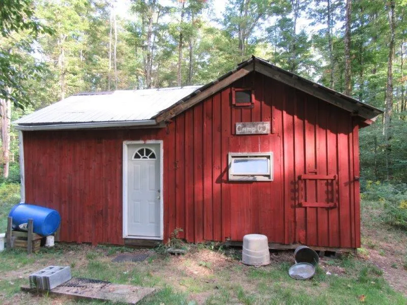 Buried deep in the woods along a private dirt road, this cabin is surrounded by State lands on 3 sides. 30 acres of beautiful managed hardwoods with straight maple trees along the ridges and throughout. Ideal location for a hunting camp as it is Northern Zone with a 6 week season and wildlife is all around you. 9/10 of a mile drive into this location as you drive through State forests, fields and over creeks just to get to it.