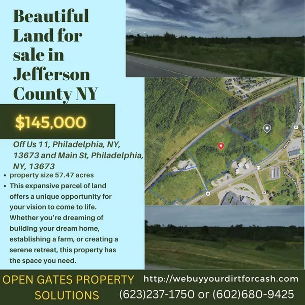 Immerse yourself in the serene tranquility of Philadelphia, NY, where we are offering an expansive piece of land for sale. This land boasts a sizeable acreage of 57.45 acres or an opportunity to create your dream estate tailor-made to your distinctive lifestyle.