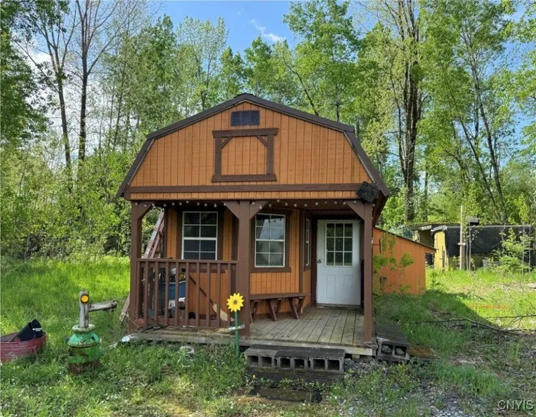 Let your imagination run wild! This 4-Season Tiny Home is situated on almost 3.5 acres of cleared and partially wooded land. Sit on your porch and enjoy watching the deer run through the field. This is an outdoorsy person's dream retreat - which includes apples trees, a deer run, with ATV & snowmobile trails nearby. The house has been partially finished with framing, insulation, Kitchen and Bathroom. There is a 60' dug well, electricity, propane heating, and it's plumbed for a septic system - just add the tank! The first level includes the main Living Area, a Bedroom, the Kitchen and Bath. The pull-down stairs lead to two large Loft Areas for additional sleeping space and storage. Just a short drive to Carthage or the Fort Drum area. Also see MLS 1615768 where property is listed as a single family.