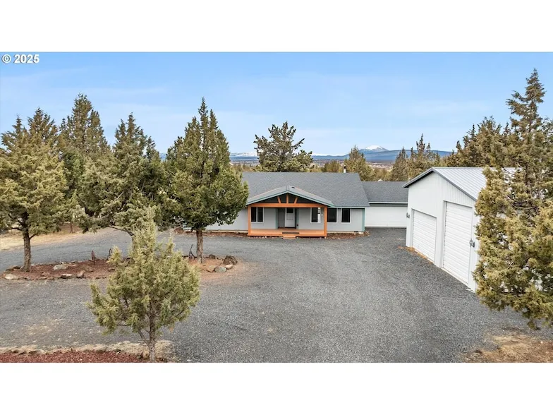 Discover the perfect blend of comfort, space, and breathtaking views in this charming ranch-style home on 4.99 acres in Crooked River Ranch! Nestled in a serene setting with stunning mountain views and backing to tranquil BLM land, this single-level home offers the ideal retreat with room to roam. Step inside to a bright and inviting living room featuring vaulted ceilings, hardwood floors, and a cozy wood-burning stove that's perfect for chilly evenings. The kitchen has quartz countertops, stainless steel appliances, an oversized walk-in pantry, eat-in bar, and abundant cupboard space. The adjacent dining area offers easy access to the back deck through sliding doors, making indoor-outdoor living a breeze. The primary bedroom includes a private ensuite bathroom, while three additional bedrooms share a full bath with a tub/shower combo. A dedicated laundry room with a separate door to the back deck adds convenience. Enjoy energy efficiency with a whole-house fan.Outdoor enthusiasts will love the covered front and back decks, garden space, and a small orchard, creating a peaceful outdoor oasis. A spacious 36' x 36' shop provides tons of room for hobbies, storage, or creative projects. Plus, there's an RV hook-up with a dump station for added convenience. Located just 15 minutes from restaurants and 40 minutes from The Cove Palisades State Park, where you can enjoy camping, boating, fishing, and swimming. As part of the Crooked River Ranch HOA, enjoy fantastic amenities including a clubhouse, golf course, park, restaurant, and tennis courts. This is your chance to own a picturesque slice of Central Oregon!