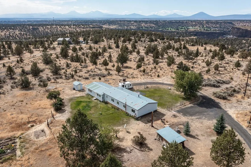 Don't miss your opportunity to own an expansive 40 acres of dream property in the Central Oregon grasslands w/theCascades as a backdrop. Nestled off the main road, this property offers beautiful mountain views & a well maintained 3 bed, 2 bath manufactured home. 2 kitchens & an open plan make it great for entertaining. Main living area boasts vaulted ceilings, ceiling fan, rustic farmhouse appeal & woodburning stove. Kitchen has tons of cabinetry & counter space w/skylight, appliances & built-in eating area. Formal dining room is located btw kitchen & main living area w/secondary canning kitchen just off garage w/storage room. Three well sized bedrooms, two full baths & laundry room. Two car attached garage & plenty of space for your RV & toys! Fenced area w/grass in rear + deck. Located less than 12 miles from Redmond, 30 miles from Bend, minutes to Lake Billy Chinook & Smith Rock Stat...