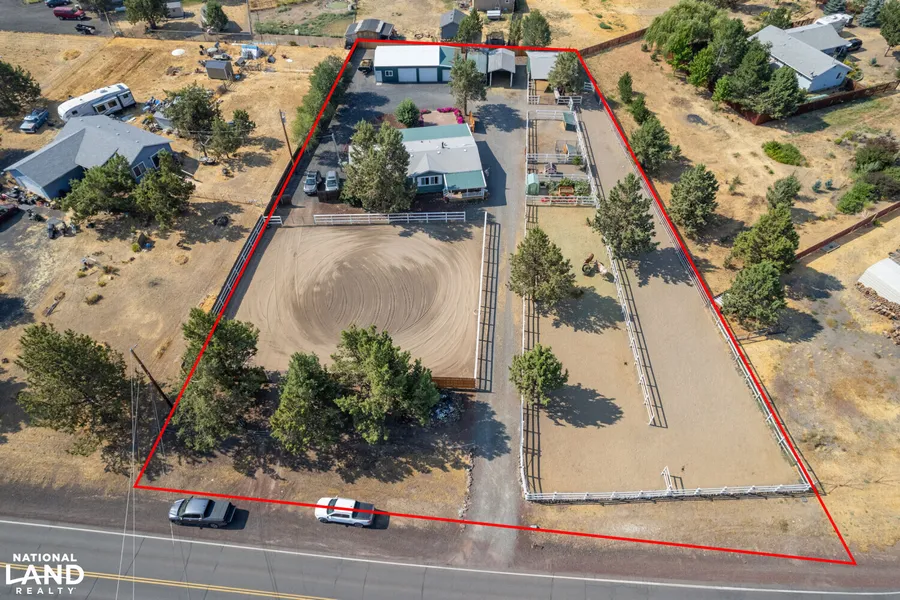 Huge Price Reduction. Known and sought after for quiet peaceful rural life, this beautiful small 1.02 acreage in Crooked River Ranch is set up for horses and 4-H projects. The home is a well-designed and improved lovely 3 bed two bath with high-efficiency heat pump for both heating and cooling. The property is perimeter fenced with a circular driveway making it convenient for pulling horse trailers in and out of the property. There is an outdoor arena for training and riding pleasure. From the matted two stalls of the barn there is fenced access up to the paved road. The fenced garden area has raised beds. Landscaping around the home includes a peach and an apple tree. A fenced section contains a chicken coop and yard. An end of the shop is insulated and heated, while the other two bays are insulated with a workbench and built-in storage cabinets. Other outbuildings give storage options ...