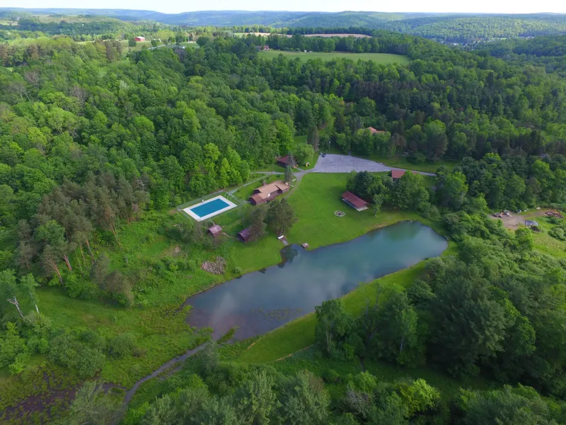 This lovely, turn-key facility is situated in the Allegheny Mountain region of Pennsylvania. Set in the valley between the mountains, this compact, yet functional facility has all the amenities necessary for a terrific personal retreat, corporate retreat, or continued use as a camp facility. Curry Run creek, which is a trout stream, flows through this beautiful property, helping to create the lovely 4 acre pond on the property that is stocked with bass.