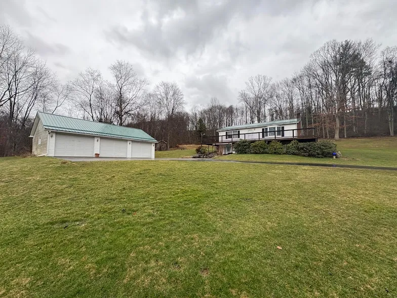 Well Maintained Ranch home on 7.77 Acres with FINISHED BASEMENT !! Features Central Air, Electric Heat Pump, Spring Water, On-Site Septic. Detached 3-Car Garage. Detached Storage Shed