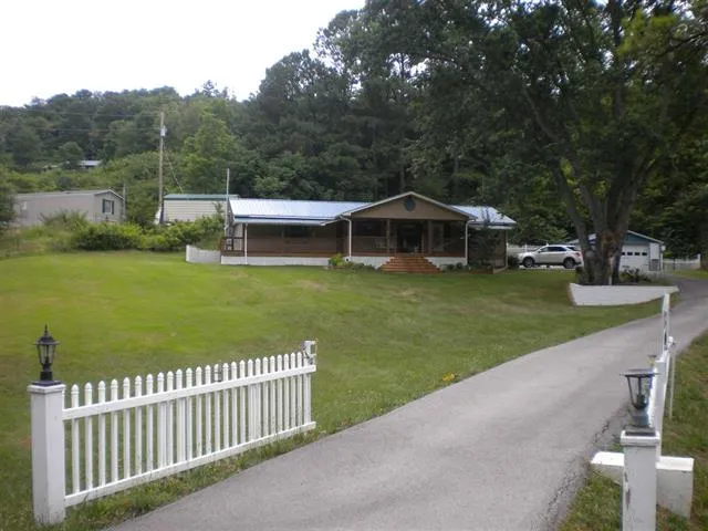 Peaceful setting. 1.27 acres. Metal roof, great relaxing front porch, small foyer reveals open space, great room concept, kitchen, dining area and living room all open. Split bedroom plan. Huge closet in master bedroom. Home appears to be in very good condition. Detached 1 car garage-workshop.
