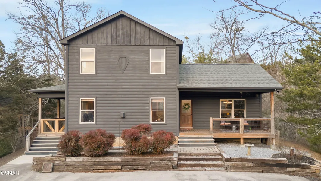 Discover this cozy, beautifully crafted cabin perched on top of 1.01 acres with stunning mountain views. This 3-bedroom, 3-bathroom retreat offers each bedroom its own full bathroom. The master bathroom features a custom vanity and shower with lime veneer plaster. The kitchen and living areas showcase gorgeous hardwood floors and a rustic hardwood staircase. The home also includes tongue-and-groove walls in the living room and shiplap accents throughout, creating a warm and inviting atmosphere. The living room is anchored by a stunning gas fireplace, perfect for relaxing, and offers main Level living with a walk-in shower for easy access. A separate laundry room adds convenience. The rustic kitchen boasts distressed cabinetry, wooden countertops, subway tile back splash, & stainless-steel appliances. Perfect for preparing meals after a day at nearby Douglas Lake. Stepping outside, you will see black chain-link fencing, custom wood and rebar porch railing and gates, and complimenting rain chain styled gutters. With neighborhood lake access just minutes away, this property is perfect for a primary residence, vacation home, or short-term rental investment. Ideally located 30 minutes from Tanger Outlets, 35 minutes from Dollywood, 45 minutes from Gatlinburg, and one hour from TYS airport, this is a MUST-SEE MOUNTAIN GEM!! PLEASE NO DRIVE BYS! APPOINTMENT ONLY!