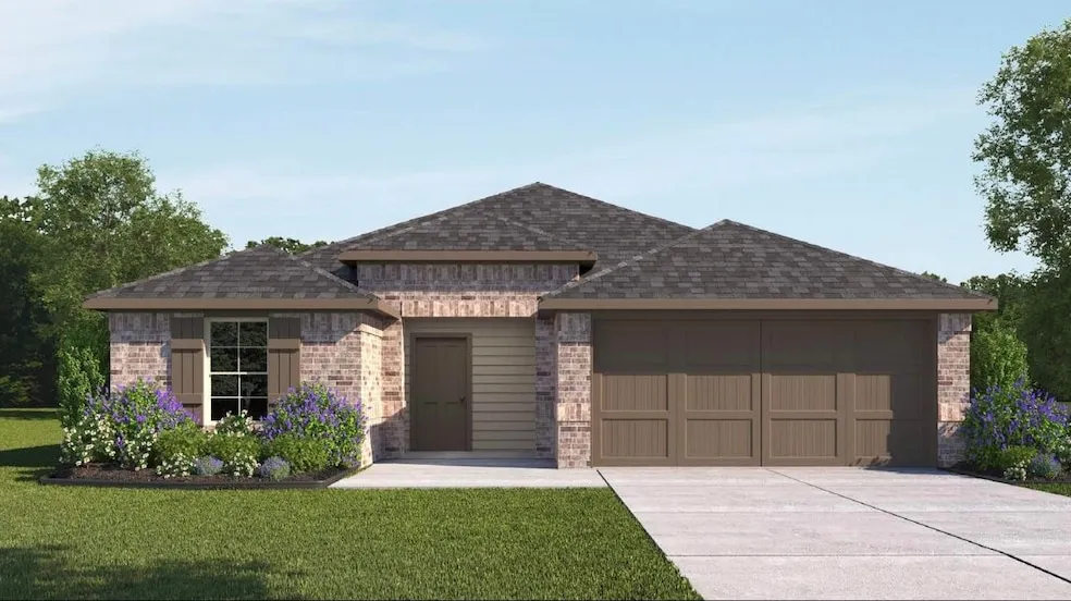 The Denton is 3 bedrooms, 2 bathrooms, and approximately 1575 sq. ft., this single-story home is designed to fit your needs. the 2-car garage gives you space for storage for your vehicles. When you first walk into the home, the entryway leads to two secondary bedrooms and the secondary bathroom and the laundry room. Continuing down the hall is the open concept living space starting with the kitchen and dining room. Modern design and function are key features, and the kitchen provides granite or quartz countertops and stainless-steel applies. The kitchen island includes a built-in sink with a pull down spout and a dishwasher.