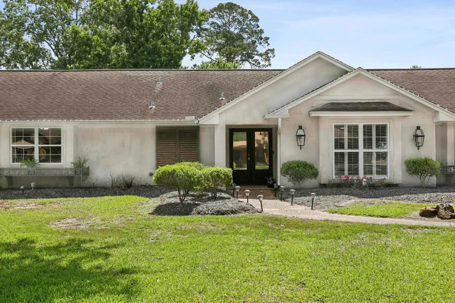 A home with timeless touches and a classic aesthetic, characterized by durable, high-quality materials, neutral color palettes, and a focus on craftsmanship,... decorated by someone with a flare for color, antiques, and modern touches. This home speaks for itself no matter what fills its space. Nearly every room has been retextured, painted, or wallpapered from ceiling to baseboards. Enjoy updated lighting, new fans and faucets, and tinted windows in the back living room and sunroom. The backyard boasts a cedar pergola with metal roofing, leveled lawn, new fan, and upgraded chicken coop with full electrical. Highlights include plantation shutters, Phylrich faucets, GE Monogram appliances, custom cabinets, gas cooktop, double oven, skylights, coffered ceiling, two woodburning fireplaces, grasscloth wallpaper, bright white lighting, and detailed paneling. Additional perks: improved electrical, Bluetooth door lock, wireless garage openers, security system, sprinkler system, and gutters.