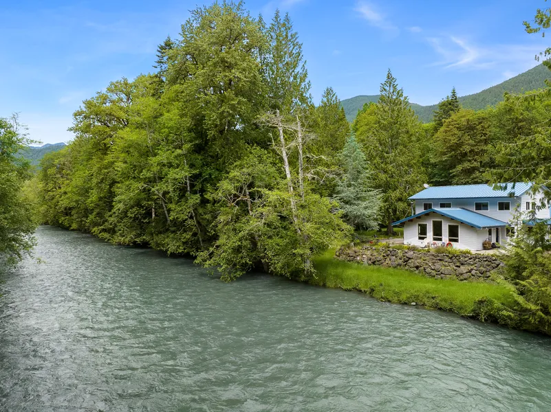 Rare property with over 400' of riverfront along the beautiful Dosewallips River. Wonderful custom built home on over 4.5 acres with gorgeous river views throughout. Open concept living with large windows and vaulted ceilings. Primary suite upstairs with an adjacent sitting/bonus room. Plenty of space for your boat, RV, and workshop. Enjoy the riverside patio, and the "Nature Watch" outbuilding with generous circular fireplace for endless entertaining. Open garden spaces and private wooded acres. This is a fabulous vacation retreat or special place to call home.