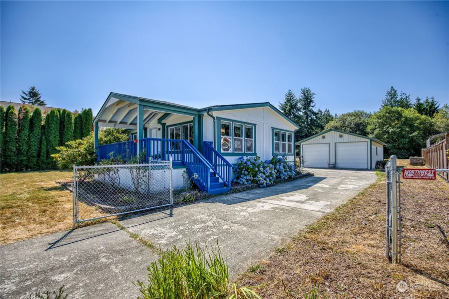 Bright and cheerful home with welcoming front porch on shy 1/2 acre close to all Port Hadlock shops & services. Recent updates include NEW ROOF on home and carport, new flooring & updated baths. The house offers an open floor plan featuring great room and large kitchen with generous prep space. The primary bedroom has an attached full bathroom and walk-in closet, plus two other bedrooms and full bath. Great storage throughout. 24' x 40' garage with paved entry is perfect for myriad uses. Ramp from rear of home aids accessibility. The large flat fenced back yard has both defined garden area + big grassy space for dogs / play area. Plenty of room for your boat, RV/trailer, and work equipment. The home is in move-in condition & ready to enjoy.