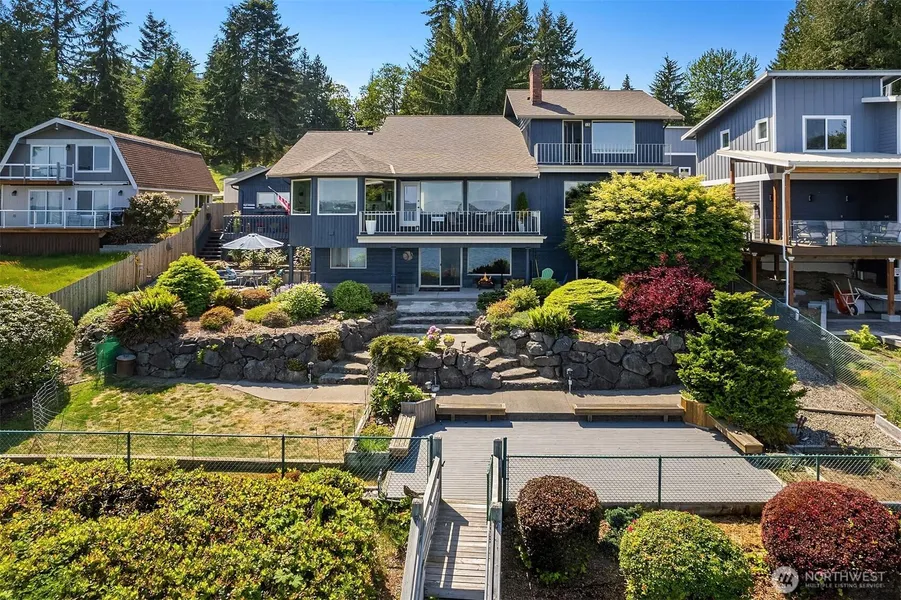 Perched above the beautiful Hood Canal shore line with sweeping views of Mt Baker and Mt Rainier is this Port Ludlow Retreat. This stunning, private, home offers sanctuary living and amazing versatility for various floor plan options. Enjoy the beautiful Cascade mountain range as the picturesque backdrop in the primary suite on the upper floor. Additional main floor second en suite bedroom. Lower level offers a second kitchen, bedroom with bath, den and bonus room. Stunning Water Views from nearly every room in the home. Enjoy beach combing at low tide and the privacy of your own waterfront retreat.