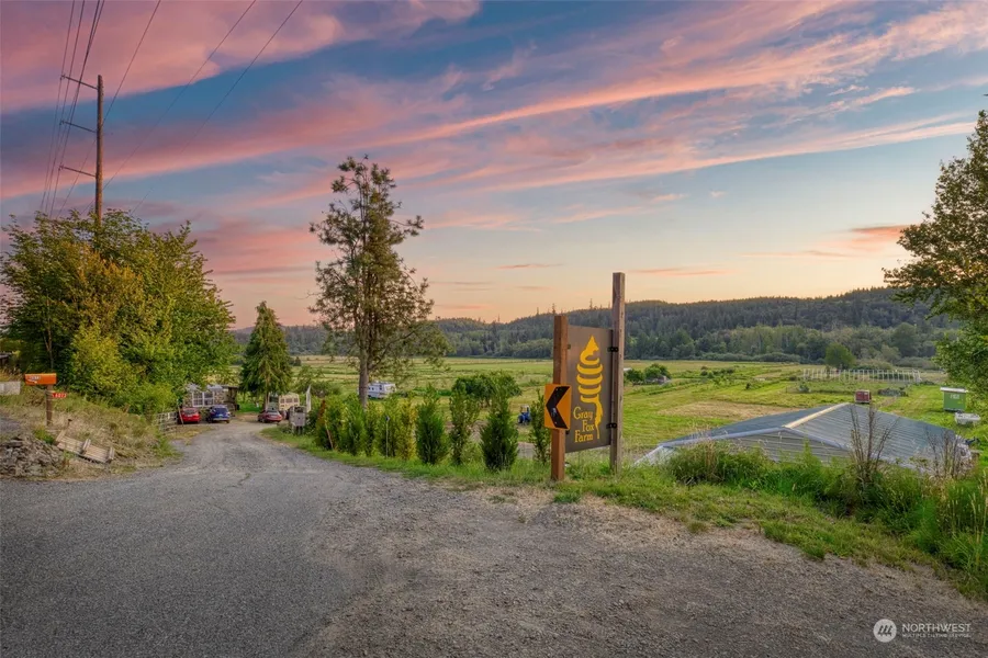 Idyllic turnkey 9.79-acre farm in Chimacum. The property features a new 30 x 80 steel building with a concrete floor and 4 garage bays - ideal for workshop space or storage, along with a rustic cabin, mobile home, and RV padall equipped with power and water. Mature fruit orchard with apple & plum trees. East Chimacum Creek meanders across the land, with a bridge providing access to the back six acres. This fertile land offers endless opportunities for your animals and dreams to flourish. Bring your imagination and make this beautiful property your own!