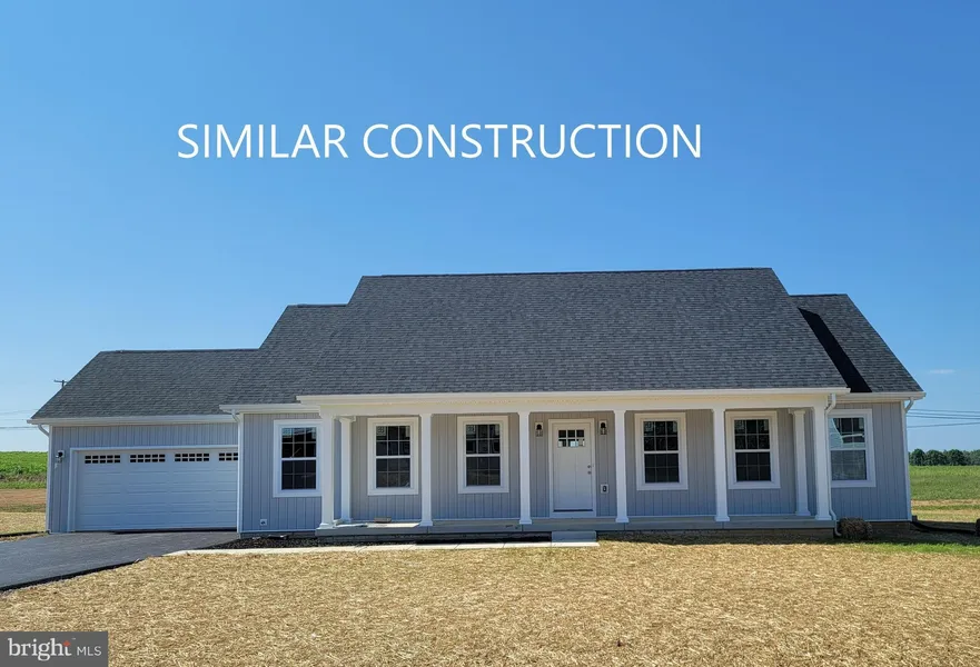 April start for August 2023 Delivery! New ranch home with full basement on 2.65+/- acre lot. Ranch style home boasts the sought after split bedroom design. The kitchen/dining combo is open to the expansive great room and features vaulted ceilings. Granite, ceramic, luxury vinyl plank flooring, carpet and stainless steel appliance package makes it complete. Home is larger than it looks. The basement provides 1500 more square feet to expand. Buyer pays transfer tax stamps. Measurements are approximate. The pictures will be similar to your new home with nice finishes selected by the builder! Attractive colored heritage grey board & batten front siding with lap siding on rear and sides. Neutral interior paint, stainless steel kitchen appliances, Bianco Diamante granite counters, gray cabinets &cigar oak floors. Model home and similar homes to view in Charles Town @ Milton's Landing.