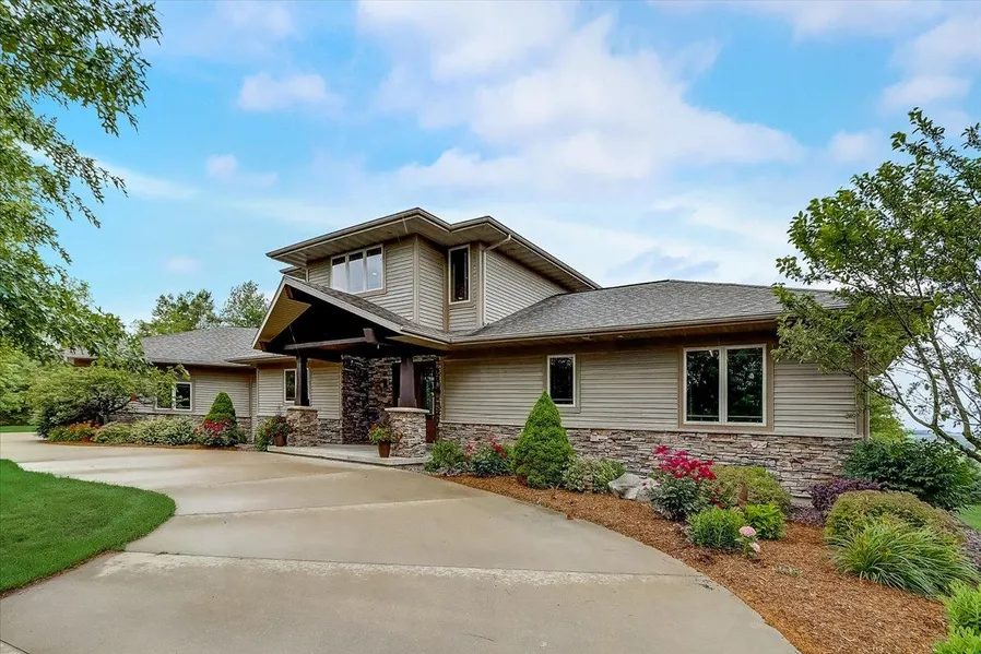 Treelined driveway is your path to serenity to this once in a lifetime property, set on 10 acres(MOL) in Lake Mills School District. Only a job transfer makes this property available. Upon entering, the quality of finishes is apparent. The mix of stone & wood will warm your soul and the views...WOW! Professional style kitchen, updated in 2021 w/ Quartz counters & tile backsplash, makes time in the kitchen enjoyable. Master Bedroom suite is amazing w/ its views, spa like bathroom (heated floor)& deck access. Walk out, LL adds over 1,000 SQ. FT. of living area w/ 2 bedrooms, full bath (heated floor) & spacious game/rec rm w/ 2nd gas fireplace. Loft Office is awesome work space. 3.5 car garage, attached, heated, floor drain & direct access to LL. Spacious deck, patio, manicured landscaping. A must see there is not enough room for all the details!