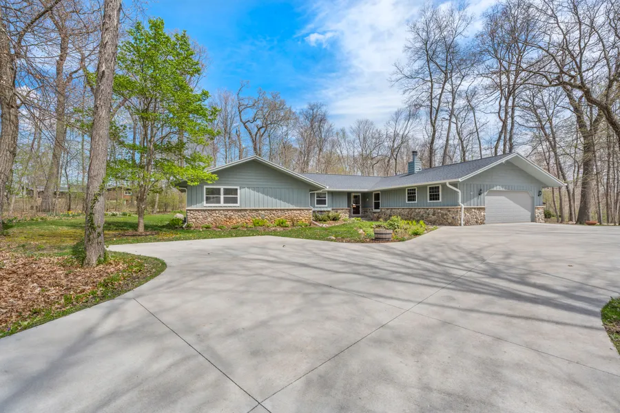 Set on a generous corner lot, this three bedroom, two-and-a-half bath ranch-style home is a haven for nature lovers, surrounded by serene, wooded landscapes. Picture yourself in the inviting four-season sunroom, where your living space and the great outdoors seamlessly blends. The open-concept design creates a warm and welcoming atmosphere, with a cozy stone fireplace and well-appointed dining and kitchen area with hardwood floors. The home's layout prioritizes convenience and privacy with two bedrooms featuring ensuite baths. Additional highlights include an attached 2.5-car garage, a main floor laundry room and guest half bath. The finished rec room is an ideal space to unwind or host gatherings. And when you're ready to embrace the outdoors, you'll appreciate the two decks where you can soak in the beauty of nature year-round.