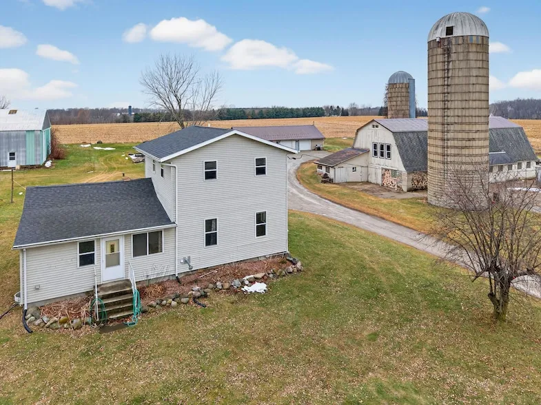 Charming 3-Bed, 2-Bath Farmhouse on 3 Acres with Endless Potential. This 3-bedroom, 2-bathroom farmhouse, nestled on 3 acres of peaceful countryside, offers a unique opportunity to restore and customize an older gem. With plenty of space, both inside and out, it's perfect for those with a vision and a bit of sweat equity. Detached 5-Car Garage: Plenty of space for vehicles, storage, or a workshop. This large garage is a great bonus for hobbyists or those who need extra space for equipment. A 2-story barn and a 1-story barn provide even more possibilities for storage, farming, or creative projects. The two silos add even more character to the property. All roofs have been replaced with metal roofs within the last 10 years. Hurry and check this one out before it's gone!